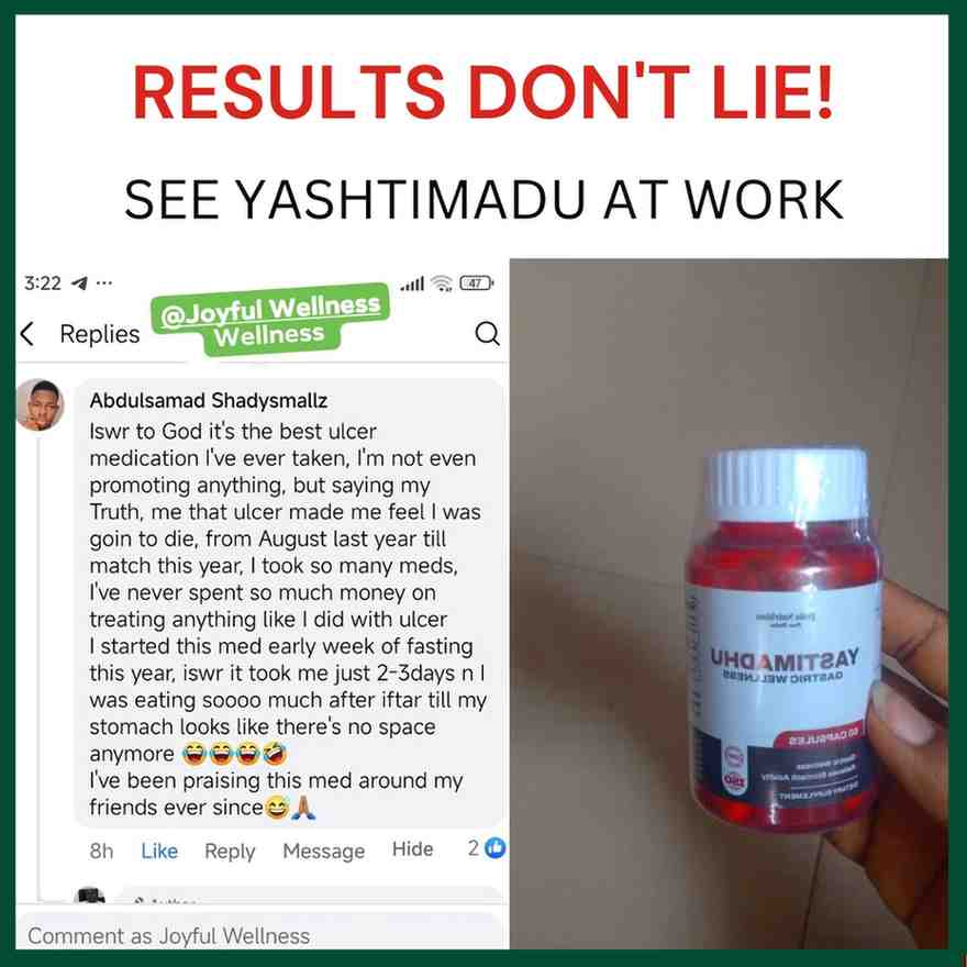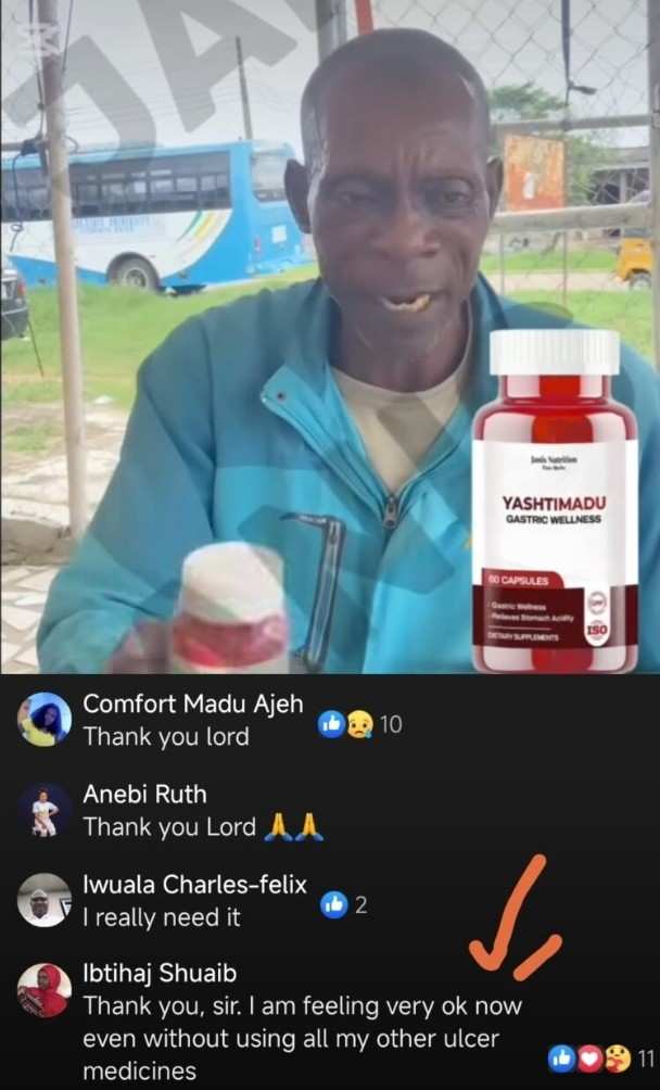 “Ever since my days as a student ulcer has really dealt with me, I don’t think there was any “agbo” I did not try or any Pharmacy medication I did not use even online. But this Yashtimadu changed everything. God bless whoever brought this thing to Nigeria.”